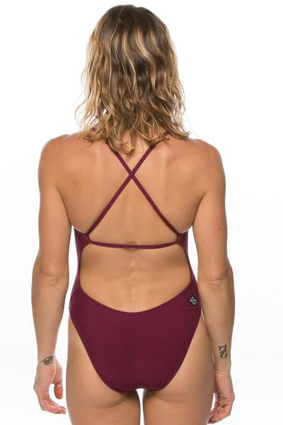 One of our bestselling styles, the Brandon is an adjustable fixed-back, full coverage one piece swimsuit with a criss-cross strap along the back. The strap is designed as one continuous band, which allows flexible distribution of tension along the shoulders and back.