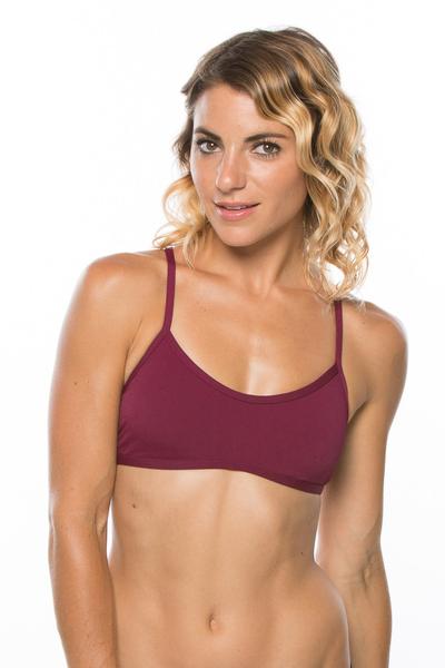 The Ryan swim top features a scooped front panel with criss-cross tie straps in the back for easy adjustability.