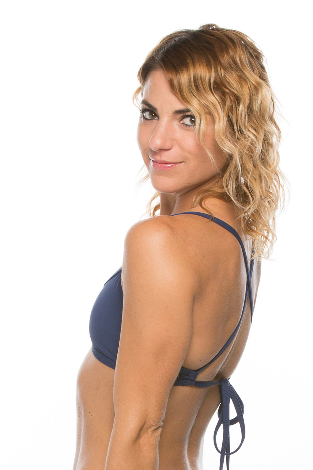 The Ryan swim top features a scooped front panel with criss-cross tie straps in the back for easy adjustability.